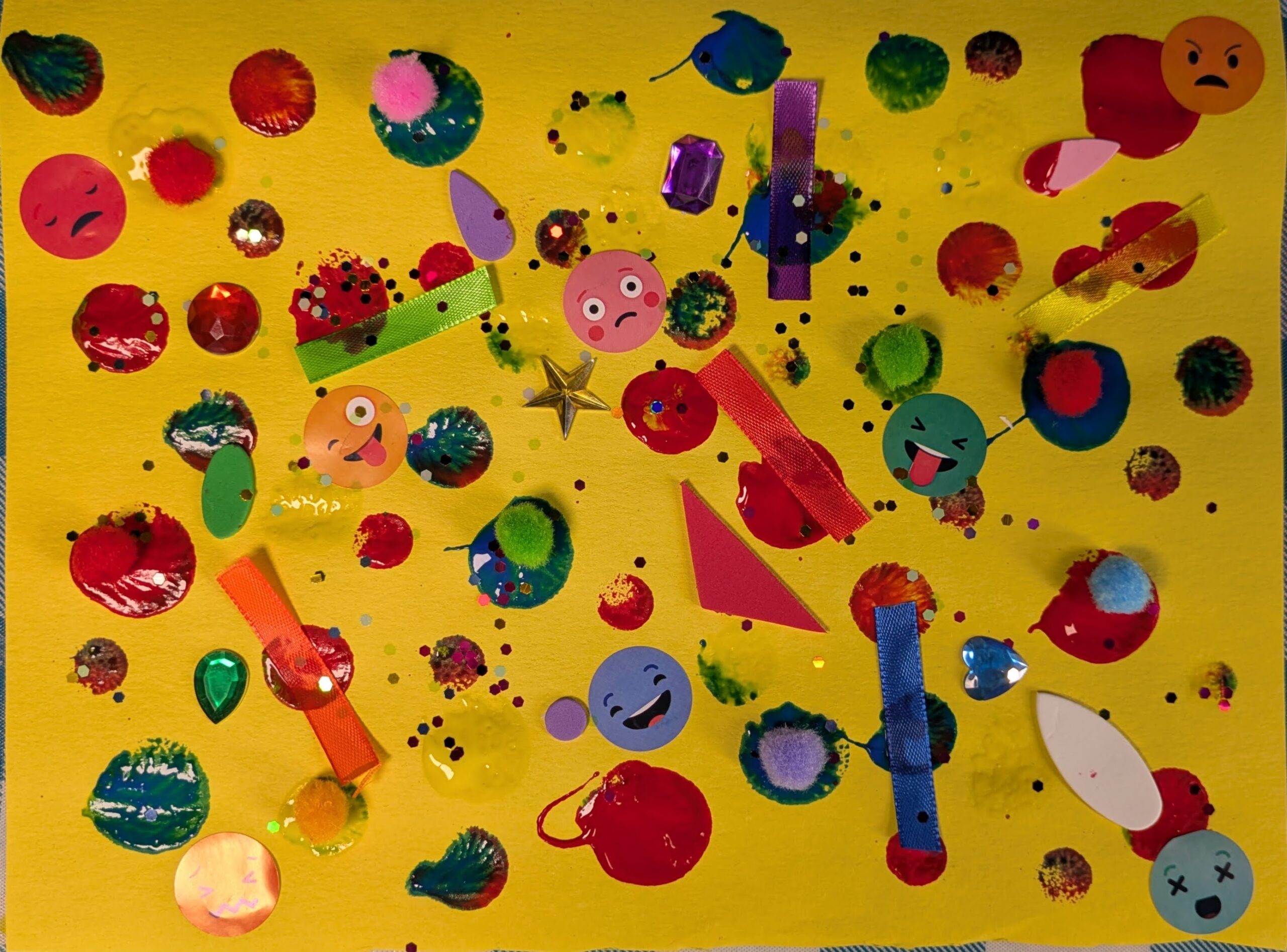 Add lots of fun items to your paper, including some emojis! Talk about each face the emojis are making and make some silly faces together.