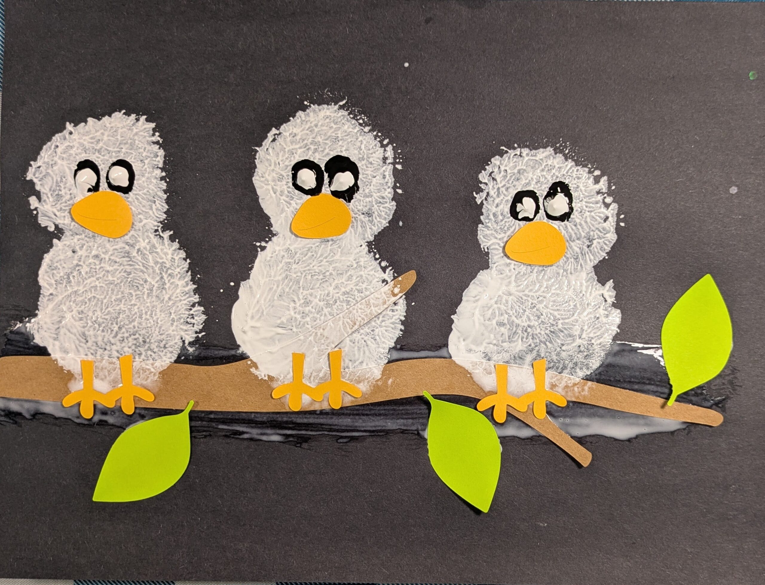 Make tree branches, leaves, beaks, and feet for your owls with the cardstock. Use large pompoms to make your owls and glue everything together.